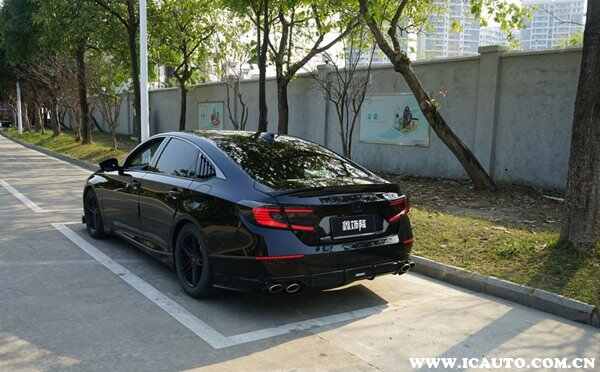 如果在购车之前就打算把雅阁改成黑武士的话可以直接选择黑色车型,这样后期就能省下一大笔贴膜的费用。对于雅阁车身上的镀铬件我们可以选择喷漆或贴膜的方式让它们黑化。前包围的后包围可更改为AK包围,如果预算足够的线寸BBS RS轮毂会比较有感觉。其实只要不涉及到动力方面改装,十代雅阁改装黑武士的价格都不会太高。