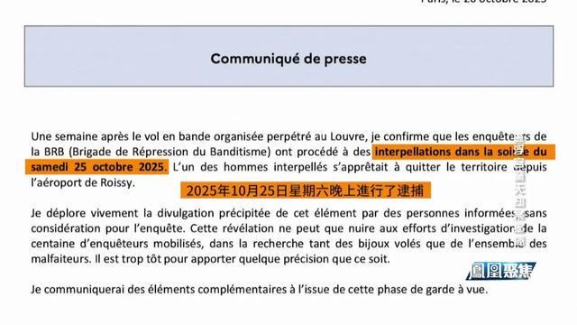 案发48小时后,卢浮宫190名安保人员接受了内部问询,案发当天的值班记录和监控录像被逐一排查。尽管10月25日抓获了两名嫌疑人,但另外两名嫌疑人和8件文物下落仍然不明。