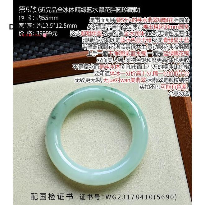 DL 1998胖东来品质翡翠手镯a货浓墨天l然 A货 无煮蜡A货 缅甸 妈妈礼物 第6款天然翡翠手
